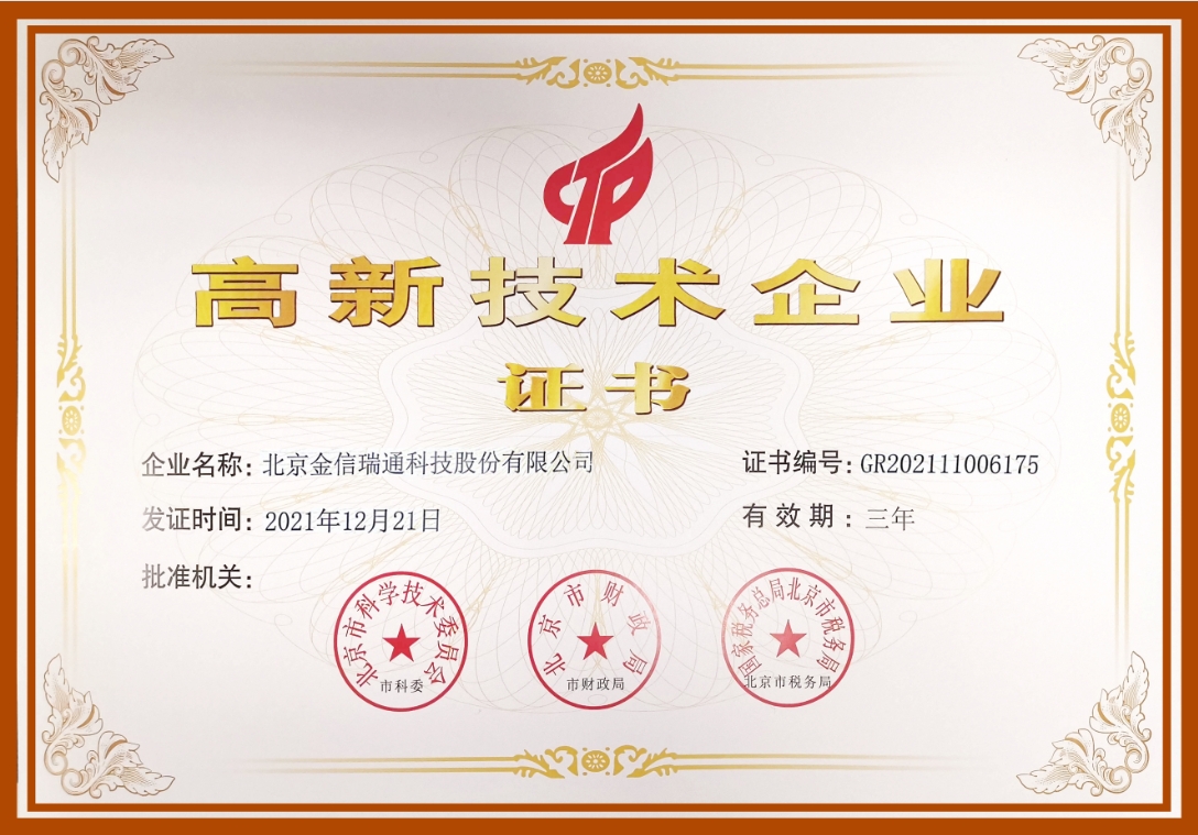 喜報(bào):金信瑞通榮獲中關(guān)村高新技術(shù)企業(yè)稱(chēng)號(hào)并獲得多項(xiàng)5G軟...